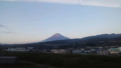 で赤富士を見ました。車内アナウンスが流れると、皆さんいっせいにパシャパシャ